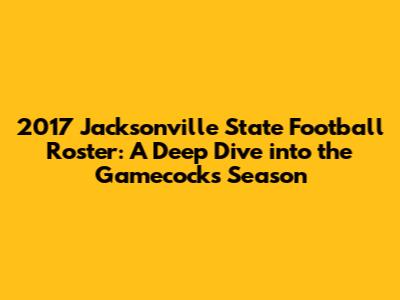 Hey guys! Let's rewind the clock to the 2017 Jacksonville State Gamecocks football season. It's time to dive deep into the Jacksonville State Football Roster 2017, the players, and the key moments that defined their journey. This season was pretty interesting, and understanding the roster is crucial to appreciating the team's performance. So, grab your game-day snacks and let's get started. We'll break down the important players, the coaching staff, and some highlights from that year. It's all about reliving the excitement and remembering what made the Gamecocks a force to be reckoned with. Let's see what made the 2017 season so special for Jacksonville State University.