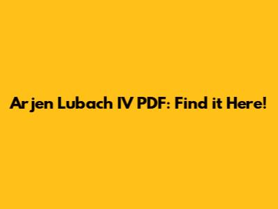 Arjen Lubach IV PDF: Find It Here!