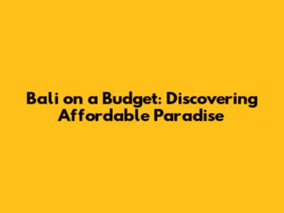 Unveiling the Secrets of Bali's Affordability