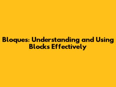 Bloques: Understanding And Using Blocks Effectively