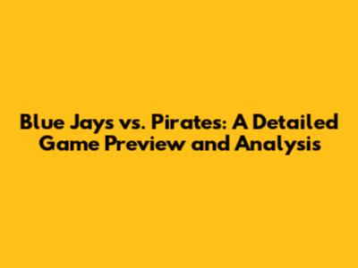 Blue Jays Vs. Pirates: Game Preview & Analysis