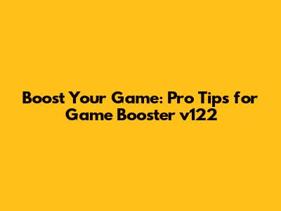 Boost Your Game: Pro Tips For Game Booster V122