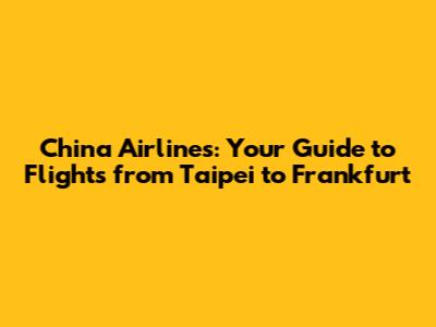 Hey everyone! Planning a trip from Taipei to Frankfurt with China Airlines? Awesome choice! You're in for a comfortable and enjoyable journey. This guide is your ultimate resource, covering everything from booking your flight to navigating the airport and enjoying your time in the air. So, buckle up, grab a cup of coffee (or tea!), and let's dive into the details. We'll explore the ins and outs of flying with China Airlines on this popular route, ensuring you have a smooth and memorable travel experience. Get ready to discover tips, tricks, and insider information to make your trip a breeze!