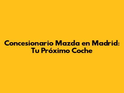 Concesionario Mazda En Madrid: Tu Próximo Coche