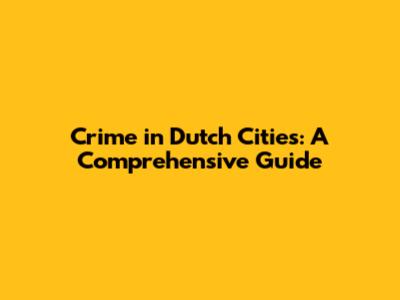 Crime In Dutch Cities: A Comprehensive Guide