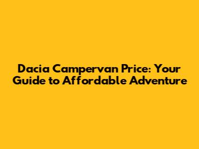 Dacia Campervan Price: Your Guide To Affordable Adventure