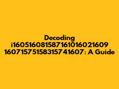 Decoding I160516081587161016021609 16071575158315741607: A Guide