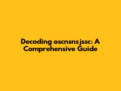Decoding Oscnsnsjssc: A Comprehensive Guide