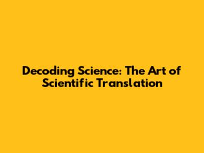Decoding Science: The Art Of Scientific Translation