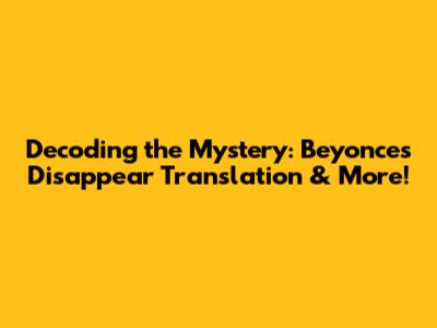 Decoding The Mystery: Beyonce's 'Disappear' Translation & More!