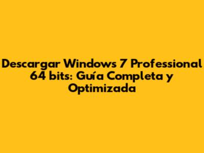 Descargar Windows 7 Professional 64 Bits: Guía Completa Y Optimizada