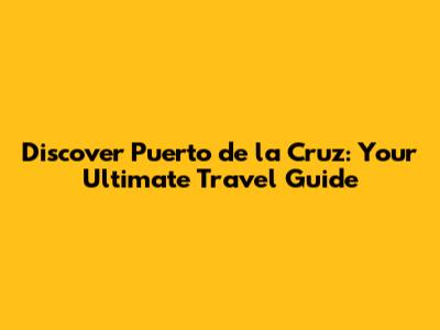 Discover Puerto De La Cruz: Your Ultimate Travel Guide