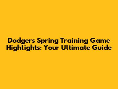 Dodgers Spring Training Highlights: Your Ultimate Guide
