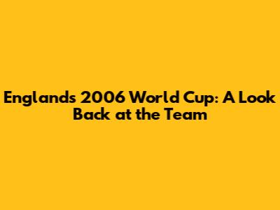 England's 2006 World Cup: A Look Back At The Team