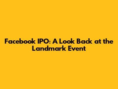 Facebook IPO: A Look Back At The Landmark Event