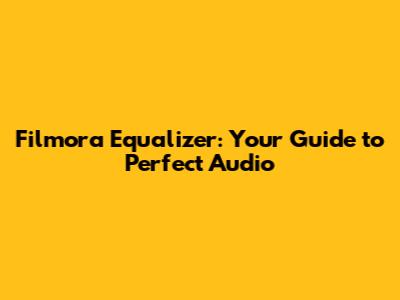 Filmora Equalizer: Mastering Audio For Video