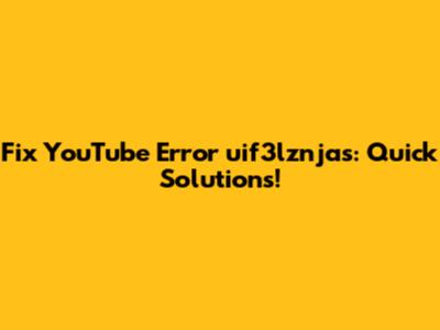 Fix YouTube Error Uif3lznjas: Quick Solutions!