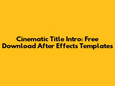 Free Cinematic Title Intro: After Effects Templates Download