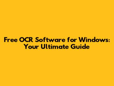 Free OCR Software For Windows: Top Picks & How-To