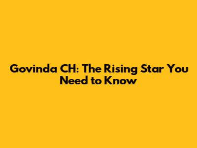 Govinda CH: The Rising Star You Need To Know
