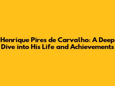 Let's explore the life and accomplishments of Henrique Pires de Carvalho. In this article, we'll cover everything from his early years and education to his career milestones and contributions. So, who is Henrique Pires de Carvalho? Let's dive in!