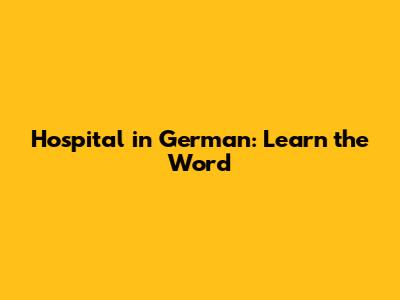 Hospital In German: Learn The Word