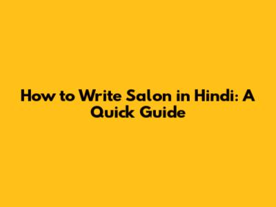 How To Write 'Salon' In Hindi: A Quick Guide