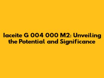The Significance of Iaceite G 004 000 M2: Why Does It Matter?