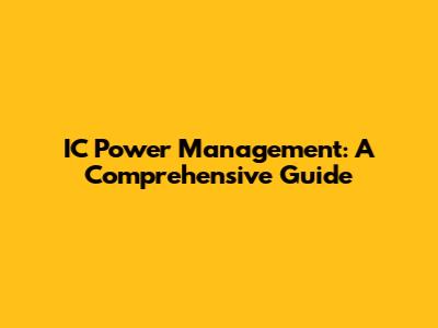 IC Power Management: A Comprehensive Guide