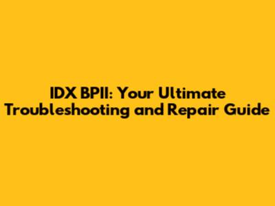 IDX BPII: Troubleshooting & Repair Guide