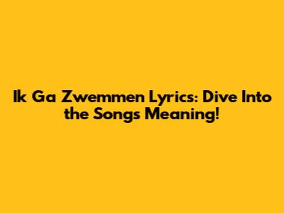 Ik Ga Zwemmen Lyrics: Dive Into The Song's Meaning!