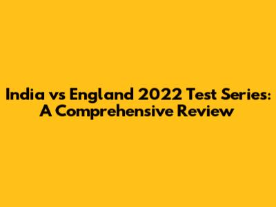 India Vs England 2022 Test Series: A Comprehensive Review