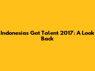 Indonesia's Got Talent 2017: A Look Back