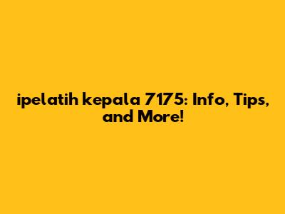 Ipelatih Kepala 7175: Info, Tips, And More!