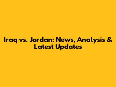Iraq Vs. Jordan: News, Analysis & Latest Updates