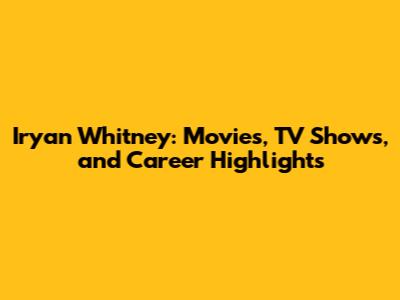 Iryan Whitney: Movies, TV Shows, And Career Highlights