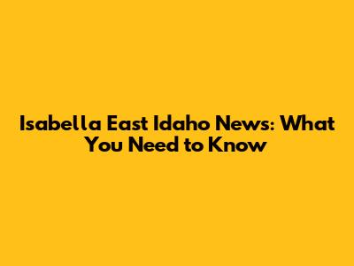 Isabella East Idaho News: What You Need To Know