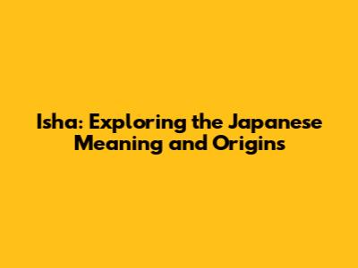 Isha: Exploring The Japanese Meaning And Origins