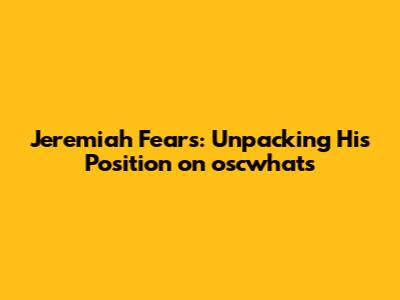 Hey guys, let's dive deep into the nitty-gritty of what's happening with Jeremiah Fears and his role within the oscwhat's community. It's a question that's been buzzing around, and honestly, understanding his position is key to grasping the dynamics at play. We're going to break down his influence, his contributions, and exactly where he stands on the various initiatives and discussions happening within oscwhat's. Get ready, because we're about to shed some serious light on this.
