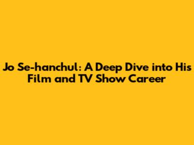 Jo Se-hanchul: Filmography And TV Show Highlights