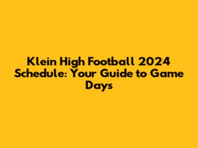 Klein High Football 2024 Schedule: Your Guide To Game Days