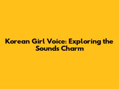 Korean Girl Voice: Exploring The Sound's Charm