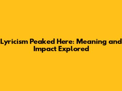 Lyricism Peaked Here: Meaning And Impact Explored