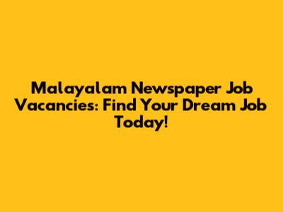 Malayalam Newspaper Job Vacancies: Find Your Dream Job Today!