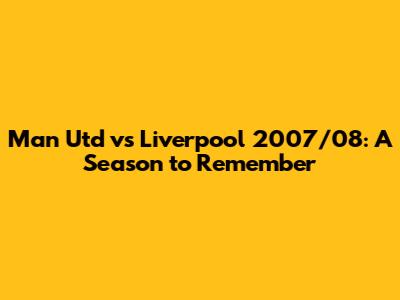 Man Utd Vs Liverpool 2007/08: A Season To Remember