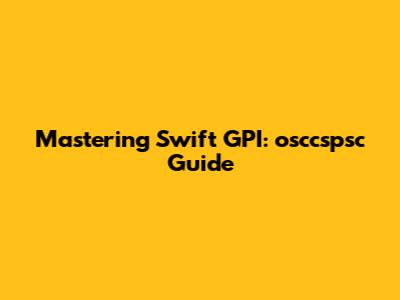 Mastering Swift GPI: Osccspsc Guide