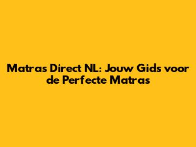 Matras Direct NL: Jouw Gids Voor De Perfecte Matras