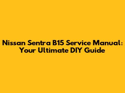 Hey car enthusiasts and DIYers! If you're the proud owner of a Nissan Sentra B15 and are looking to get hands-on with its maintenance and repairs, you've come to the right place. A Nissan Sentra B15 service manual is your best friend when it comes to understanding your vehicle inside and out. It's packed with all the information you need to tackle everything from routine oil changes to more complex engine diagnostics. Forget about shelling out tons of cash for every little fix; with the right manual, you can become your own mechanic and save a bundle. We're going to dive deep into what makes this manual so essential and why every B15 owner should have one readily available.