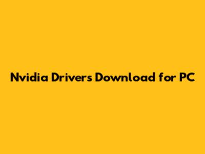 Nvidia Drivers Download For PC