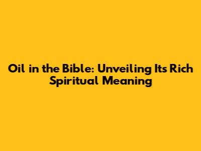 Oil In The Bible: Unveiling Its Rich Spiritual Meaning